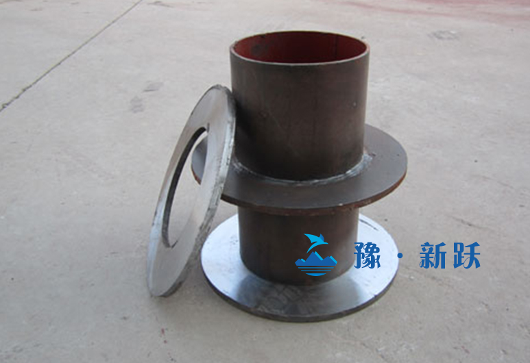 5、鋼管和擋圈焊接后經(jīng)鍍鋅處理,再施行與套管安裝。全部施行安裝后再施行擋板和固定法蘭焊接。